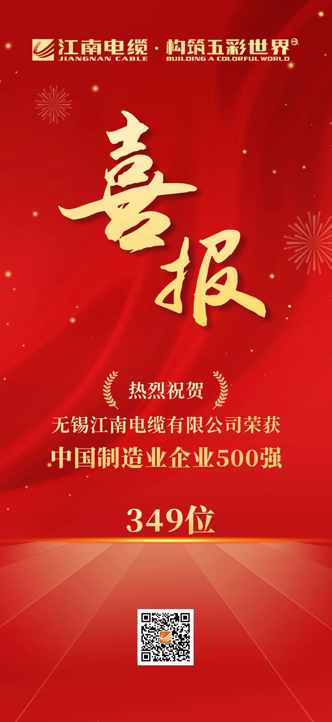 【喜報(bào)】江南電纜榮獲2025中國(guó)制造業(yè)企業(yè)500強(qiáng)!